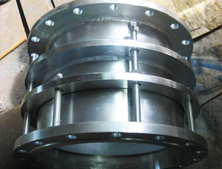 設(shè)計(jì)時(shí)除考慮滿足正常操作要求外,還應(yīng)考慮滿足檢修要求。特別是在檢修設(shè)備、閥門時(shí),閥門之后的管路中仍有壓力存在,此時(shí): 設(shè)計(jì)時(shí)按介質(zhì)流向?qū)⑸炜s器安裝在閥門之后,同時(shí)應(yīng)考慮在伸縮器之后的管路上設(shè)置一個(gè)用于檢修的閥門;對(duì)于管于科交大且又不經(jīng)常檢修的情況,從anquan、經(jīng)濟(jì)角度出發(fā),可對(duì)伸縮器進(jìn)行改造,設(shè)置限位裝置,如圖所示;如管道上已設(shè)置有兩個(gè)閥門時(shí),伸縮器可裝在兩個(gè)閥門之間。在圖中所示的情況下應(yīng)將伸縮器裝在電動(dòng)蝶閥與手動(dòng)蝶閥之間,檢修時(shí)關(guān)閉手動(dòng)蝶閥,即可對(duì)其前面的設(shè)備與閥門進(jìn)行檢修或更換。